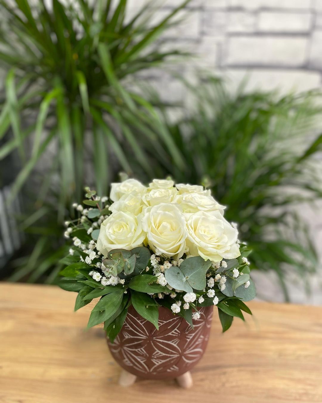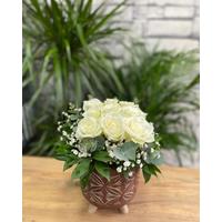 Saksıda 9 Beyaz Gül
